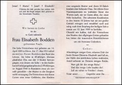 ∞ 17.5.1911 Josef Heinrich Bodden; 4 K., davon 1 Sohn seit August 1944 im 2. Weltkrieg in Rumä#nien vermisst; sc hwere Krankheit in den letzten 15 Jahren; Druck in Iserlohn |
