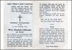 ∞ Okt. 1906 Jakob Faßbender, † 19.8.1956; 6 K.; Druck in Bedburg/Erft |