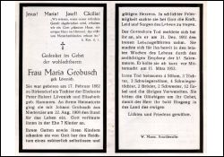 Eltern: Peter Hubert Lövenich u. Elisabeth geb. Hammers; ∞ 22.8.1908 in Birkesdorf Johann Grobusch aus Niederzier, † 31.12.1951; 7 K.; Druck in Arnoldsweiler |