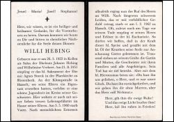 Eltern: Johann Hebing, † 3.5.1960, u. Wilhelmine geb. Verbeet; Jugend in Hasselt; ∞ 21.8.1951 in Riesenbeck Agnes Stock; blieb im Haus der Eltern |