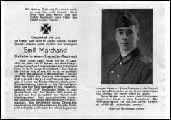 Gefallener 2. Weltkrieg; Eltern: Schreinermeister Nikolaus Marchand aus Trier u. Gertrud geb. Görres aus Nieder-Adenau; erlernte das Gärtnerhandwerk; Okt. 1942 Einberufung; Druck in Ahrweiler |