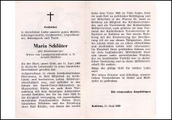84 J.; besuchte die Schule der Sacré-Coeur-Schwestern in Blumenthal; ∞ den Amtsrichter, späteren Landgerichtsdirektor Arnold Schlüte, † 1950; 5 K., davon 1 Sohn † 1963; Mitgl. Kirchenvorstand der Pfarrei St. Josef in Koblenz; Vorsitzende des Kath. Müttervereins; |