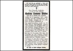 ∞ 1898 Gastwirt Johann Hullmann, nach 3 J. †; 1 Sohn, mit 17 J. †; ∞ 11.11.1903 Gastwirt Clemens Wüller; 2 K.; in den letzten 14 J. war sie ständig krank |