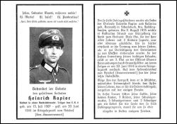 Gefallener 2. Weltkrieg; Eltern: Valentin Rapior u. Kasimira geb. Borowitz; ∞ 9.8.1935 Katharina Straub aus Stürzelberg; 2 K.; am 3.5.1944 an der Ostfront schwer verwundet; Heldenfriedhof Reishog (Generalgouvernement) |