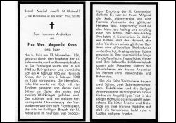 ∞ 4.2.1895 Heinrich Kraus, † 5.2.1938; 4 K., davon 2 Söhne im 1. u. 2. Weltkrieg gefallen; |