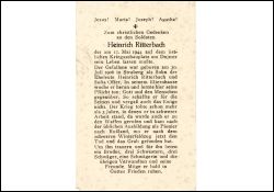 Gefallener 2. Weltkrieg; Eltern: Heinrich Ritterbach u. Sofia geb. Offer; 1942 einberufen, als Pionier nach Russland |
