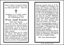 Eltern: Jakob Ropertz u. Margareta Hackenbroich; ∞ in Rommerskirchen Josef Kreuter aus Gohr, † 3.2.1937; 8 K., davon alle 3 Söhne †; |