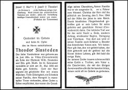 Opfer 2. Weltkrieg; Eltern: Wilhelm Sinsteden u. Elisabeth geb. Kluth; ∞ 31.5.1930 Käthe Schmitz; 1 Tochter; Tod durch feindl. Fliegerbeschuss |