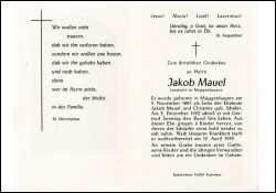 Landwirt in Müggenhausen; Eltern: Jakob Mauel u. Christine geb. Schäfer; ∞ 2.12.1922 Gertrud Sonntag; 6 K., davon 1 früh †; längere Krankheit |