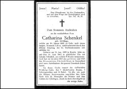 ∞ 14.6.1863 Johann Schenkel; 9 K., davon 4 †; 1923 Diamantene Hochzeit; |