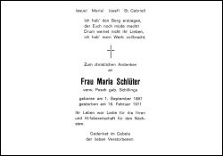 Schlüter, geb. verw. Pesch, geb. Schillings | Vorname: |