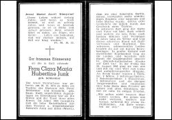 Eltern: Johann Peter Schloemer u. Elisabeth geb. Zaun; ∞ 1903 Tierarzt u. Ziegeleibesitzer Heinrich Junk aus Elsen, Westf., Witwer mit 6 unmünd. Kindern; 1 eigene Tochter; nach dem Tod des Mannes vor 25 J. mehrte sie sein Erbe u. Vermögen |