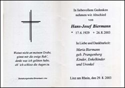 Ehefrau: Maria geb. Prangenberg; Kinder; Wohnort: Linz a. Rh. |