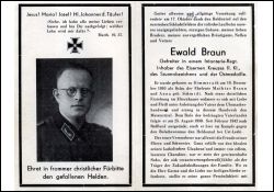 Gefallener 2. Weltkrieg; Eltern: Mathias Braun u. Anna geb. Schmidt; Uhrmachermeister; 25.8.1939 Einberufung; seit Febr. 1942 in Russland; verlobt; Druck in Monschau |