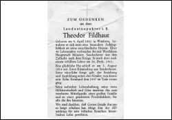 Landesinspektor i.R.; lebte über 40 J. in Münster i. W.; nach dem 2. Weltkrieg nach Sendenhorst; ∞ 3.8.1914 Änne Kössendrup aus Sendenhorst; 3 K., davon Sohn Reinhard † 1947 |