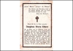 Mit 7 anderen Opfer eines Luftangriffs (Bombenteppich auf Gut Brecher, 2. Weltkrieg); Jungfrau; Eltern: Hubert Löhrer u. Anna geb. Dackweiler; 28 J. führte sie den Haushalt auf der Buirer Burg |