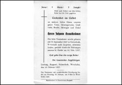 Längeres, schweres Leiden; Wohnort: Limburg; Beisetzung in Wershofen |
