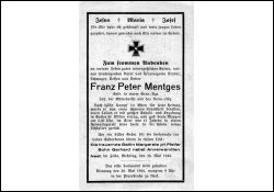 Gefallener 2. Weltkrieg; nach 3 J. im Osten von schwerer Krankheit befallen; 41 J.; ∞ Margarete Pfeifer; Sohn Gerhard; Wohnort Neef |