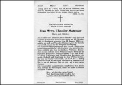 Eltern: Peter Mülders u. Gertrud geb. Janshen (Janhsen?); ∞ 23.1.1912 Theodor Matenaar, † vor 12 J.; Kinder |
