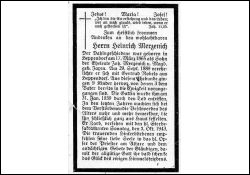 Eltern: Johann Merzenich u. Magdalena geb. Jaxen; OO 29.9.1889 Gertrud Robels aus Heppendorf, † 31.1.1939; 9 K., davon 3 †; Beschwerden des Alters fesselten ihn zuletzt an das Haus |