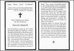 Eltern: Nikolaus u. Maria Magdalena Mödrath; OO 28.2.1934 Elisabeth Breuer, verw. Kirsch aus Golzheim; 2 K. (Buir) |