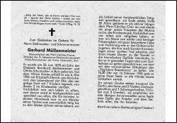 Stellmacher- u. Schreinermeister; Eltern: Bernhard Müllenmeister u. Ottilie Schumacher; ∞ 6.5.1905 Elisabeth Etterich aus Morschenich; 7 K., davon 3 früh †; 50 J. Pfarr-Cäcilien-Chor; Ehrenbrandmstr. in Buir |