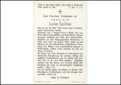 Tod durch Verkehrsunfall; Eltern: Franz Spilles u. Elise geb. Martin; Pädag. Akademie Köln; 1957-62 Lehrerin in Budberg, Kr. Moers; anschließend Lehrerin in Brühl-Heide; Ostern 1962 Verlobung mit Heinz Tomberg; |