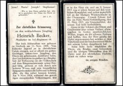 Gefallener 1. Weltkrieg; war nach der Volksschule auf dem Bürgermeisteramt tätig; 9.11.1914 Eintritt ins Heer; 9.1.1915 an den westl. Kriegsschauplatz |
