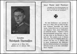 Gefallener 2. Weltkrieg; Eltern: Reinhard Thomassen u. Aleida geb. Jansen; nach RAD zur Wehrmacht, Russland; am 4.2.1943 schwer verwundet; Soldatenfriedhof Krementschug, Ukraine |
