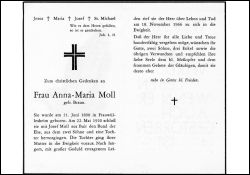 ∞ 22.5.1920 Josef Moll aus Buir; 3 K.; Tochter †; langes Leiden (Buir) |