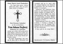 Langes, schweres Leiden; ∞ 21.4.1912 Johann Siegberg aus Mondorf; 4 K.; Druck in Zülpich |