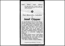 Opfer eines Fliegerangriffs im 2. Weltkrieg; Eltern: Albert Cüpper u. Maria geb. Frenzel; Druck in Aachen |