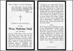 Eltern: Franz Horchem u. Katharina geb. Granrath; ∞ 6.5.1906 Peter Held, † 1929; 2 Söhne im 2. Weltkrieg gefallen; Druck in Lechenich |