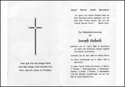 Eltern: Johann Habeth u. Agnes geb. Lammerich; ∞ 20.5.1920 Maria Wirtz; 3 überlebende Kinder |