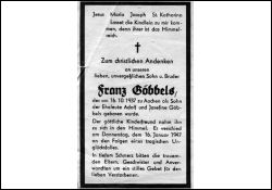 Tod durch Unglücksfall; Eltern: Adolf u. Josefine Göbbels |