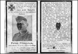 Gefallener 2. Weltkrieg; Eltern: Joseph Pfingsten u. Anna geb. Flosdorf; auf der Landzunge Kertsch schwer verwundet; beigesetzt b. Sowchose Begereow |