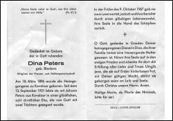 ∞ 13.9.1921 Johann Peters aus Kevelaer; 2 Töchter; Mitgl. Frauen- u. Müttergemeinschaft; Druck in Kevelaer |