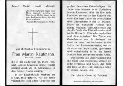 ∞ 1900 in Bad Godesberg Witwer Martin Kaufmann; kinderlos; nahm sich der Kinder ihres Mannes aus 1. Ehe an; führendes Mitgl. Elisabethverein; Druck in Bad Godesberg |