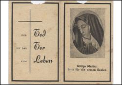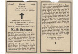 Eltern: J. Schmitz u. Christine geb. Schiffer; Jungfrau; Druck in Grevenbroich |