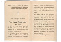 Eltern: Wilhelm Groß u. Katharina geb. Birgel; ∞ 13.8.1943 Siegesmund Soboczinsky; 2 K.; sie starb bei der Geburt des 3. Kindes |