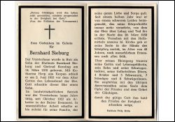 Eltern: Bernhard Sieburg u. Gertrud geb. Kersting; ∞ 2.6.1933 Katharina Herp aus Kerpen; 1 Sohn; im landwirtschaftlicher Betrieb tätig; seit Okt. 1952 Arbeiter in der Buirer Brennerei; seit einem halben Jahr schwer leidend |