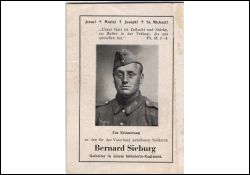 Gefallener 2. Weltkrieg; Eltern: Thomas Sieburg u. Albertine geb. Braun; diente 10 J. auf dem Krafft'schen Gut; Nov. 1942 Einberufung; Einsatz in Frankreich, dort schwere Lungenentzündung; Heimaturlaub Ostern 1944; an die Ostfront; am 26.7.1944 schwer verwundet |