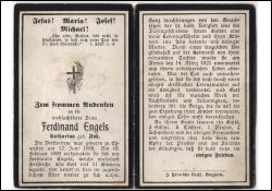 Tödlich verunglückt auf der Heimreise von ihrer erkrankten Tochter; ∞ 16.2.1890 Ferdinand Engels; 11 K., davon 3 jugendl. †; Druck in Bergheim/Erft |