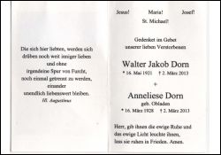 ∞ Walter Jakob Dorn, *16.5.1921, † 2.3.2013 |