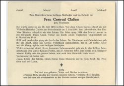 ∞ 2.6.1901 Wilhelm Heinrich Claßen aus Morschenich, † 1916 durch Unglücksfall; 4 K., davon 1 Sohn † 1934 |