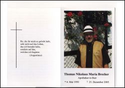 Eltern: Reiner Brecher u. Maria Gertrud geb. Nesseler; Kindheit auf der Buirer Burg; seine Lieblingstante: Adelheid Pingen geb. Nesseler in Frimmersdorf, wo er seine Ferien verbrachte; Pharmaziestudium; eröffnete im Nov. 1987 in Buir seine St.-Josefs-Apotheke |