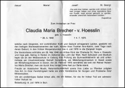 Sie starb 2 Tage nach der Geburt ihrer Tochter Ann-Katrin; Eltern: Dr. Hans von Hoesslin u. Inge geb. Seling in Raiten im Achental; Gymnasiallehrerin am Ursulinenkloster Schloss Hohenburg, am Mädcvhengymnasium in Soest u. am Wirteltorgymnasium in Düren; ∞ 20.2.1975 Reiner Hubertus Maria Becher |