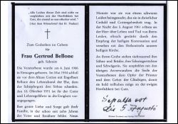 neunmonatiges Leiden; ∞ Mai 1934 Engelbert Bellone, † 10.10.1951; 3 Söhne; Druck in Düren |
