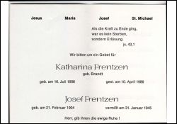 ∞ Josef Frentzen, *21.2.1904, vermisst im 2. Weltkrieg 31.1.1945 |