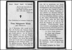 Eltern: Franz Odenhoven u. Gertrud geb. Kurth; ∞ 22.2.1914 Wilhelm Klein; 4 K., davon der einzige Sohn am 16.7.1941 im 2. Weltkrieg an der Ostfront gefallen; mehrere Schlaganfälle |